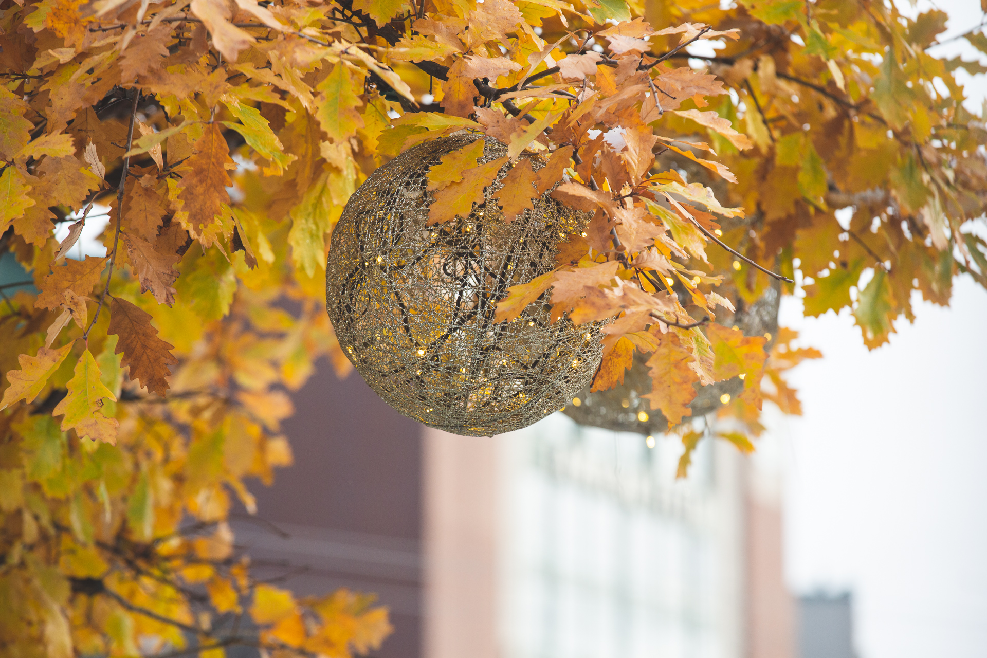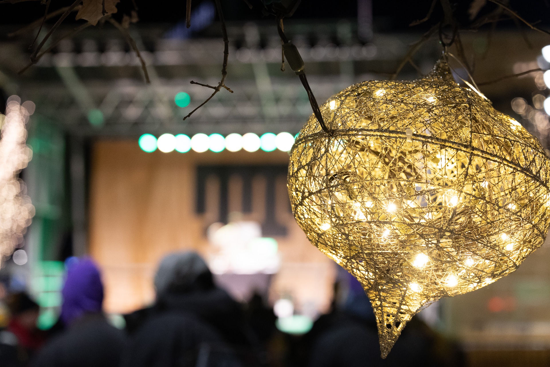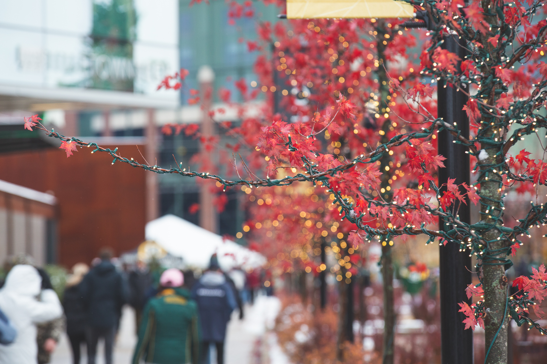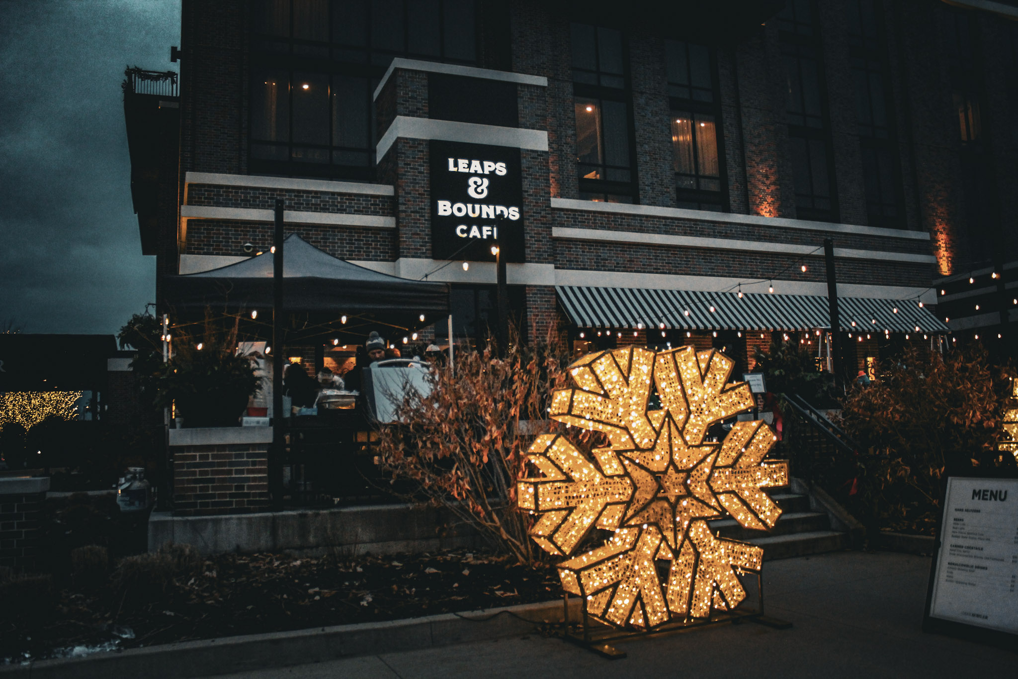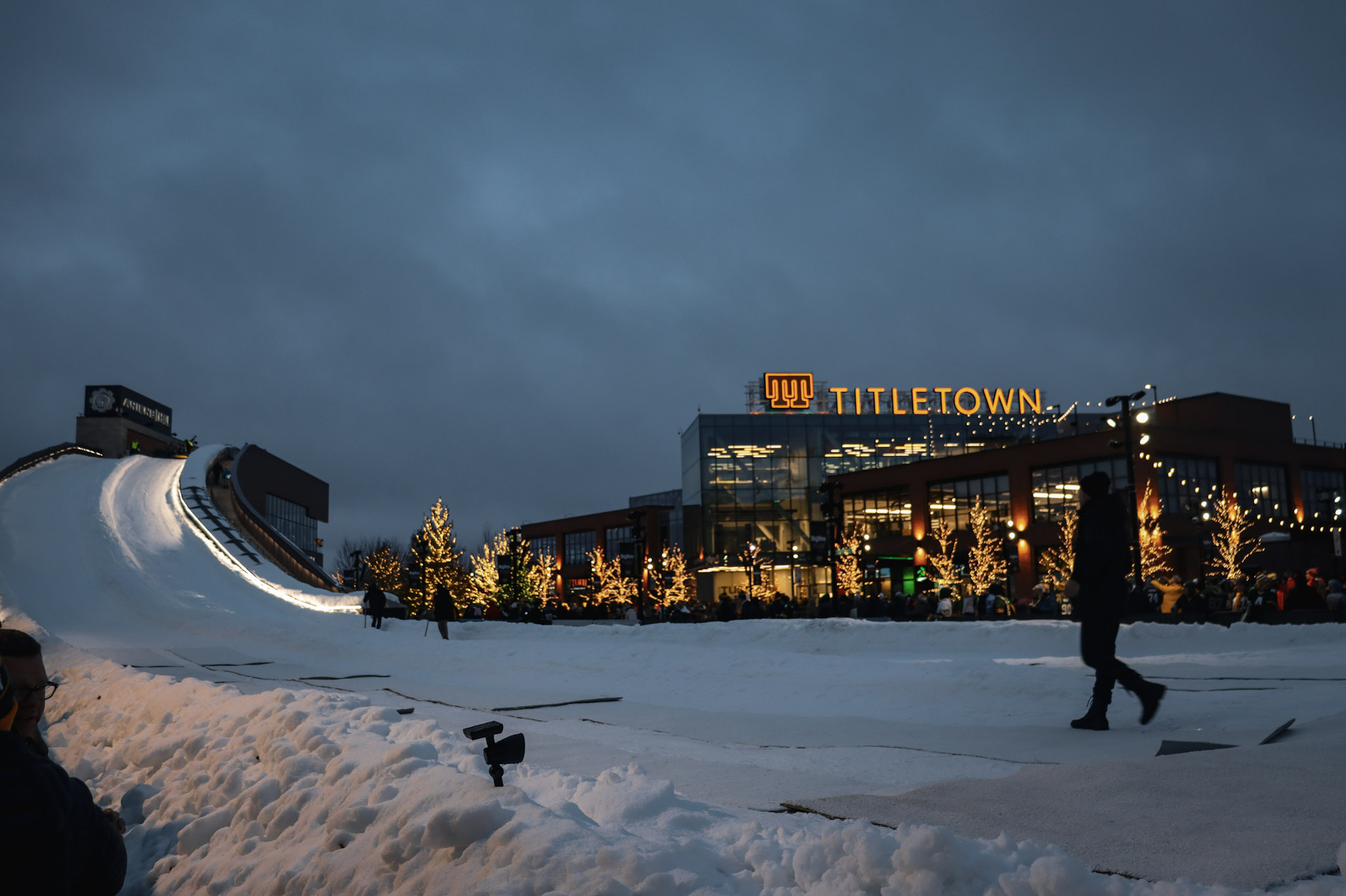 To achieve this elegant look, we meticulously wrapped approximately 215 trees across the property in classic warm white lights to create a consistent, shimmering glow. The project also featured custom-made, lit signs showcasing festive holiday sayings and the Titletown logo, alongside oversized 3D snowflakes designed specifically for guest photo opportunities. To ensure the gathering spaces and ice rink were both functional and atmospheric, we installed extensive overhead lighting to illuminate the park’s main thoroughfares. This large-scale installation not only highlights the unique architecture of the district but also creates a safe, brilliant environment for the community to celebrate the season together.